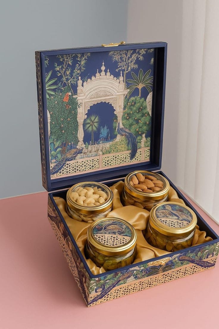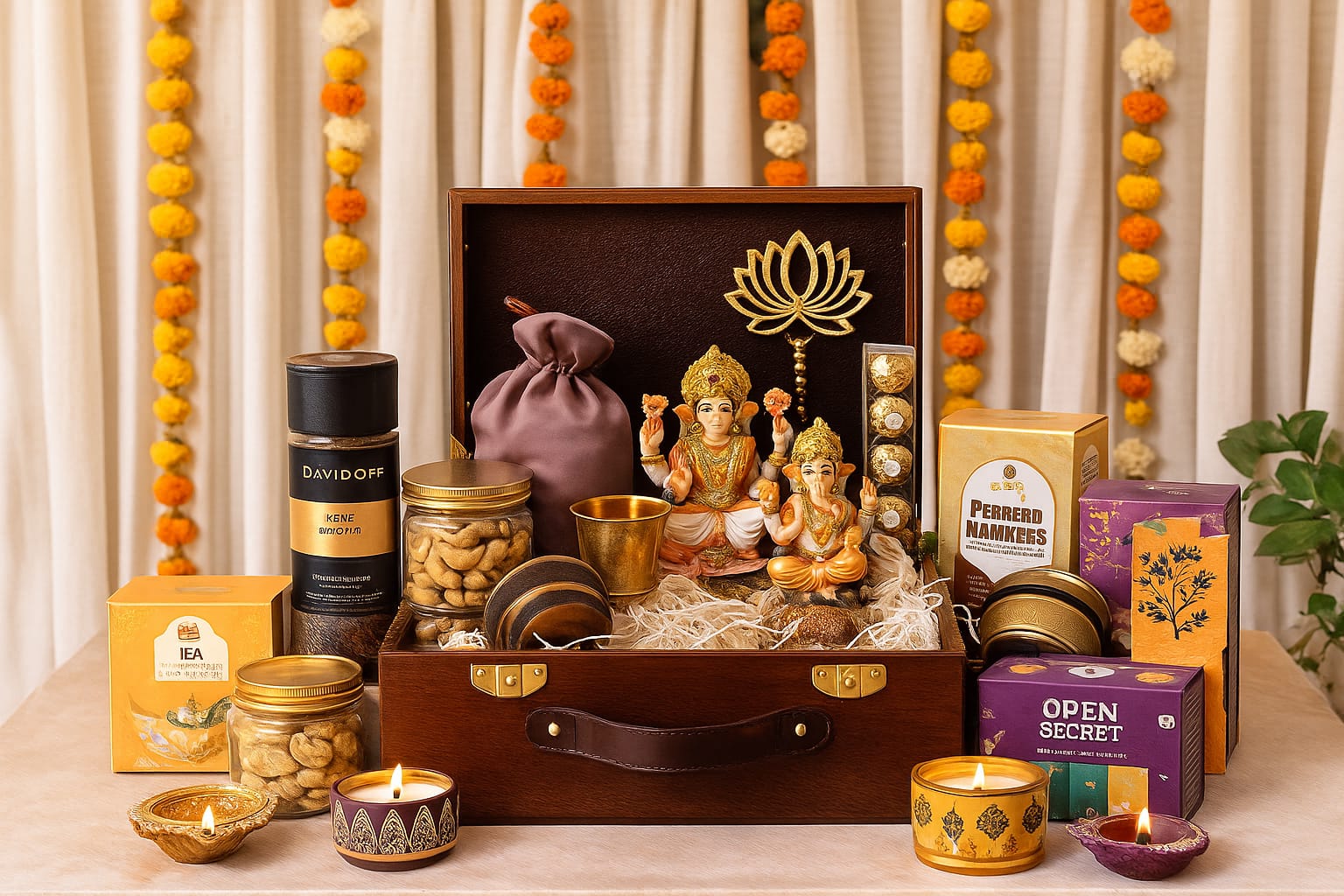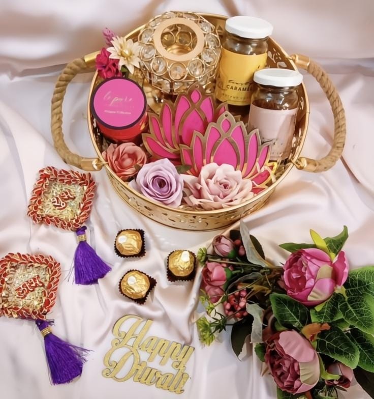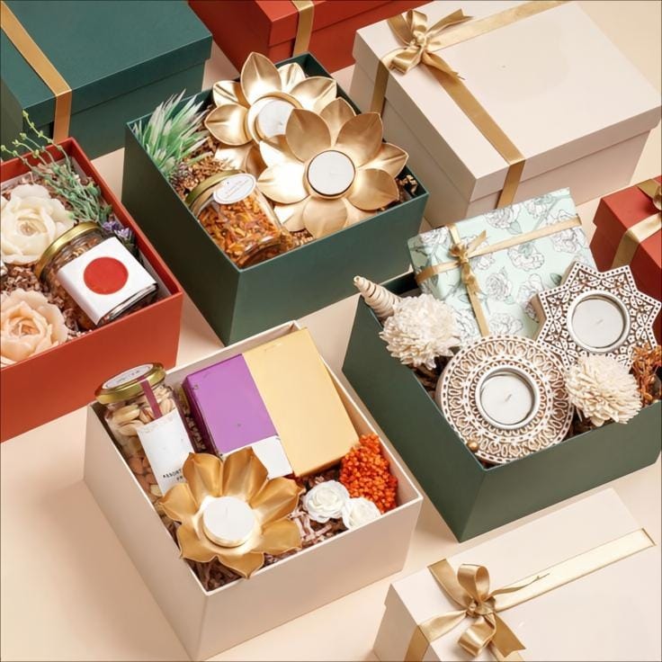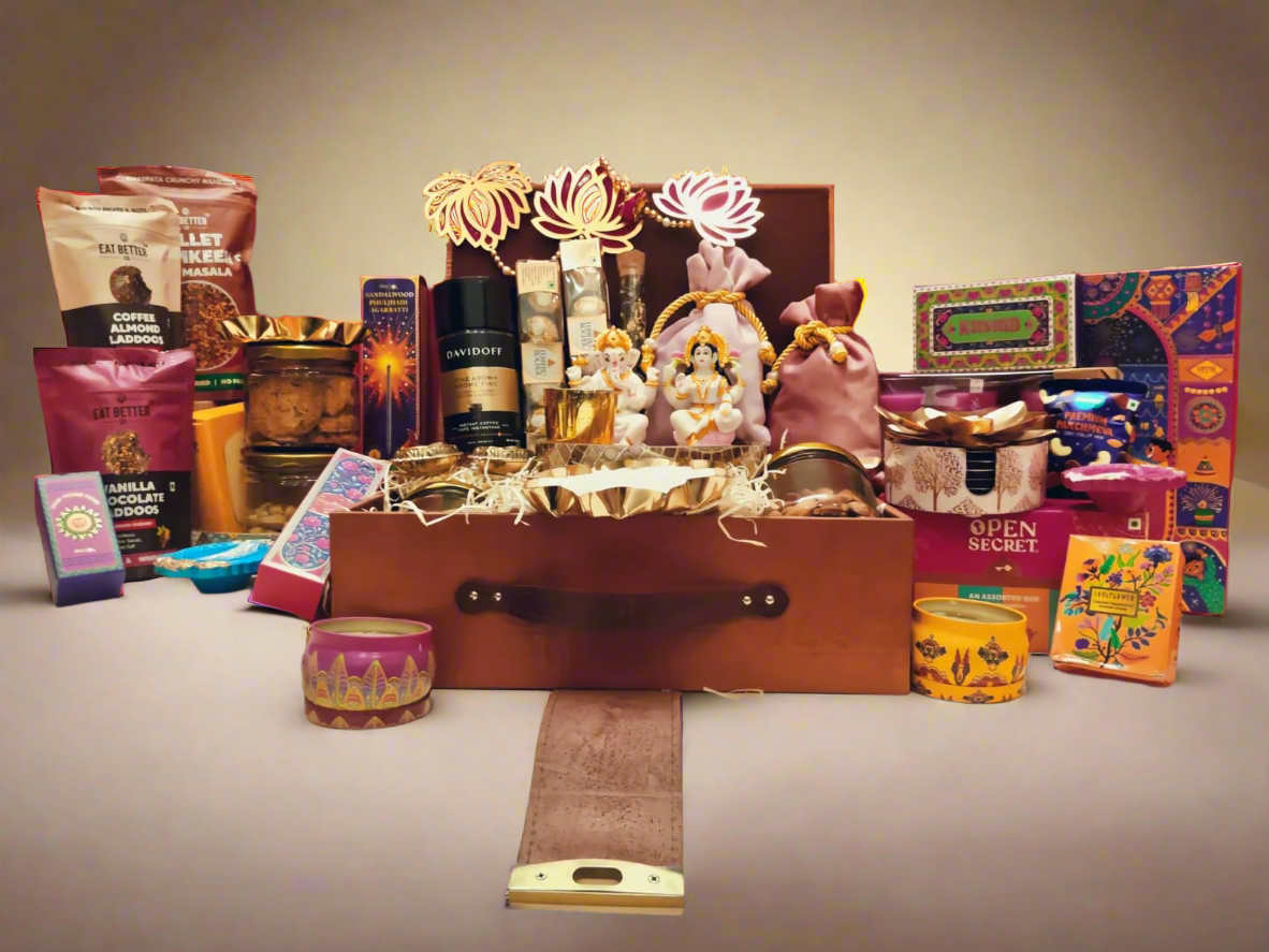 Each hamper is a lavish assortment, from premium dry fruits, artisanal sweets, gourmet chocolates to elegant Ganeshji idols, handcrafted Diyas, metal brass candles, festive jars and Candles, decorative Torans, and a collection of other exquisite Diwali essentials. Make this Diwali unforgettable for your clients, partners, and colleagues with hampers that reflect elegance, luxury, and impeccable taste